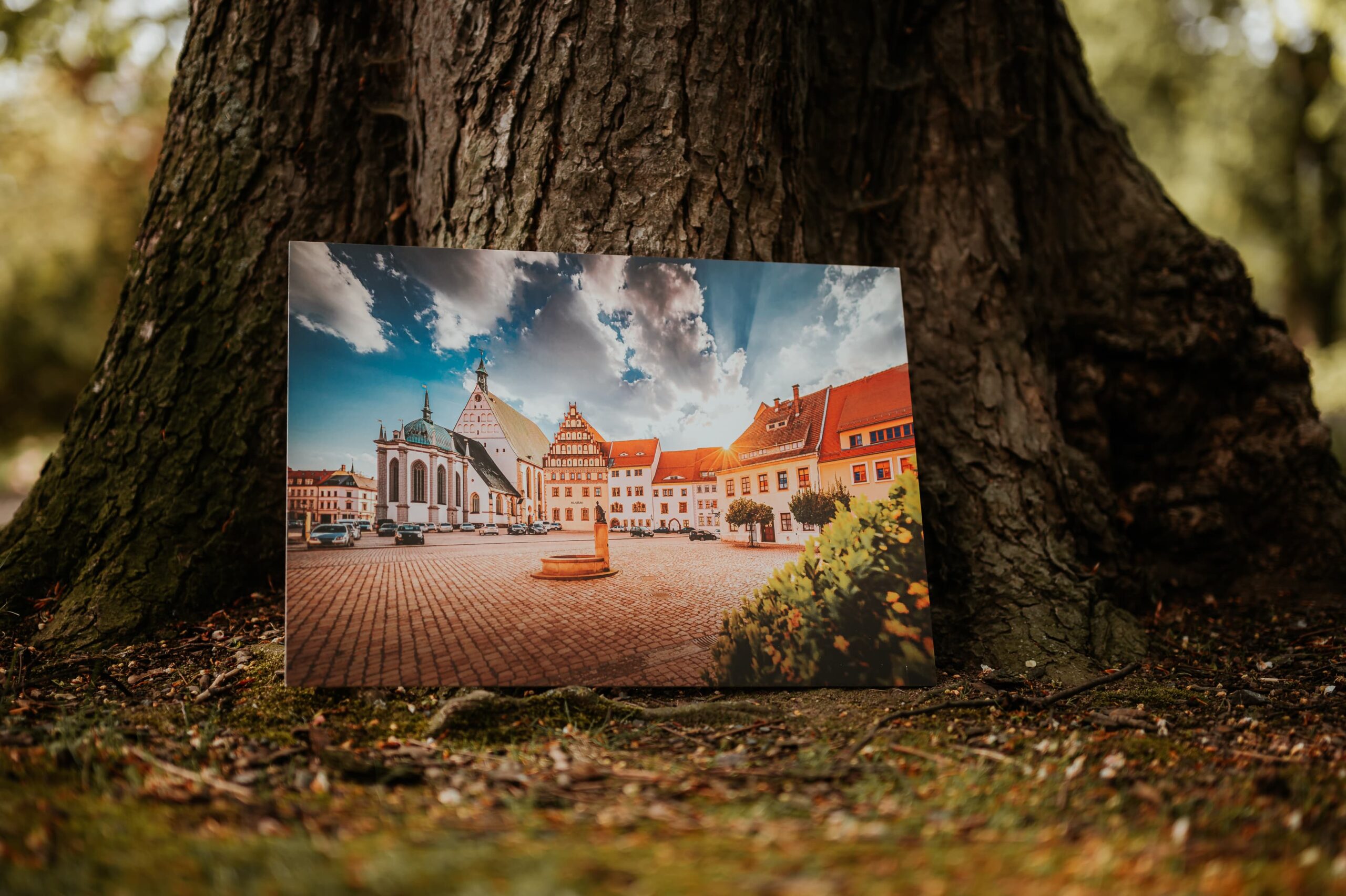 Hol dir ein Stück Freiberg in deine Stube mit unserem Wandbild des Freiberger Untermarkts, festgehalten in den letzten warmen Strahlen des Sonnenuntergangs. Das Bild auf einer leichten Forex-Hartschaumplatte bringt einen Hauch von Wärme und Farbe in jeden Raum.
