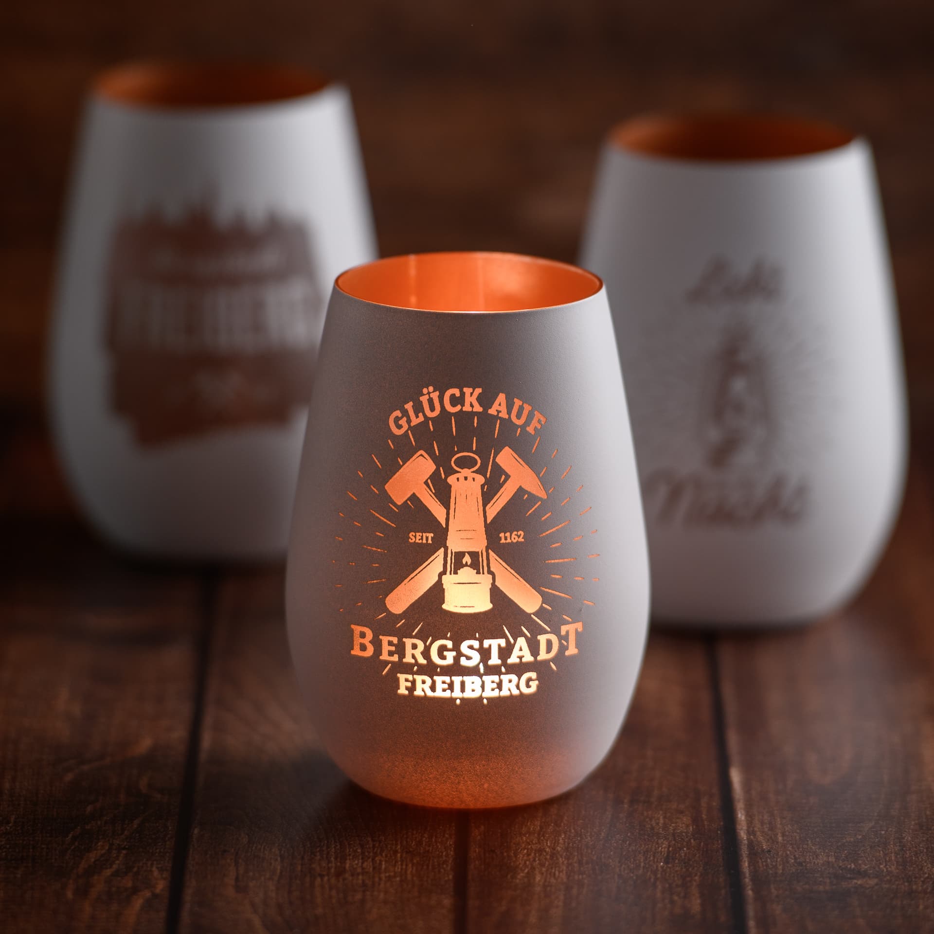 Unsere zweifarbigen lackierten Windlichter sind echte Sachsen. Sächsisches Glas trifft sächsische Laserkunst.